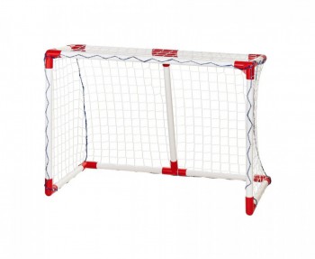 В комплект входят ворота, две клюшки и два мячика (изготовлены из пластика) красного и белого цвета. Складная конструкция позволяет брать комплект с собой. В комплекте 8 анкеров.