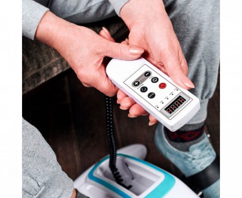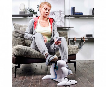 Тренажёр работает от сети 220 В. Самостоятельный ход педалей вперёд и назад помогает в реабилитации и разработке мышц без усиленной нагрузки.