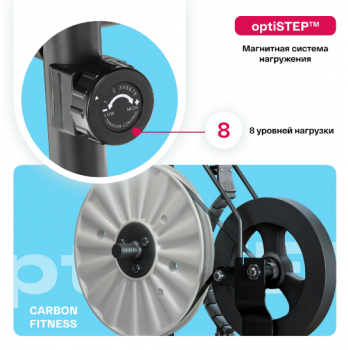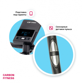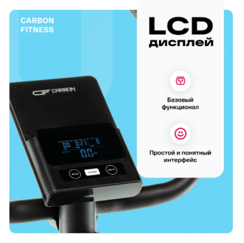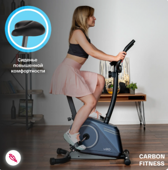 Представляем вам велотренажер U20 от CARBON FITNESS - современное и эффективное средство для поддержания здоровья и физической формы прямо у вас дома. Высокопрочная рама с антикоррозийной обработкой и покраской в один слой обеспечивает долговечность и надежность тренажера, а магнитная система нагружения optiSTEP™ с 8 уровнями нагрузки позволяет вам настроить интенсивность тренировки под свои потребности. Маховик BioFusion весом 14 кг обеспечивает плавное и комфортное кручение педалей, а однокомпонентный литой педальный узел и прорезиненные педали с регулируемыми ремешками обеспечивают безопасность и комфорт во время занятий. Комфортабельное сиденье анатомической формы и возможностью регулировки положения по вертикали позволяет настроить тренажер под ваши индивидуальные параметры. Стандартный руль с оплеткой из пенорезины обеспечивает удобство и комфорт во время тренировки. Измерение пульса осуществляется сенсорными датчиками на поручнях, а LCD консоль с яркой индикацией отображает информацию о времени, скорости, дистанции, калориях, пульсе и одометре, обеспечивает вам полный контроль над вашими тренировками. Велотренажер CARBON FITNESS U20 предлагает несколько программ, включая быстрый старт и ручной режим, чтобы сделать ваши тренировки разнообразными и интересными. Русский и английский языки интерфейса делают использование тренажера удобным для всех пользователей. Дополнительные удобства, такие как подставка под планшет, транспортировочные ролики и компенсаторы неровностей пола, делают использование велотренажера еще более удобным и практичным. Размер в рабочем состоянии составляет 83x51x122 см, вес нетто - 18,5 кг, а максимальный вес пользователя до 120 кг. Ключевые преимущества CARBON FITNESS U20: • магнитная система нагружения optiSTEP™ с 8 уровнями нагрузки; • маховик BioFusion весом 14 кг; • LCD консоль с яркой индикацией; • габариты тренажера составляют: 83x51x122 см; • максимальный вес пользователя до 120 кг.
